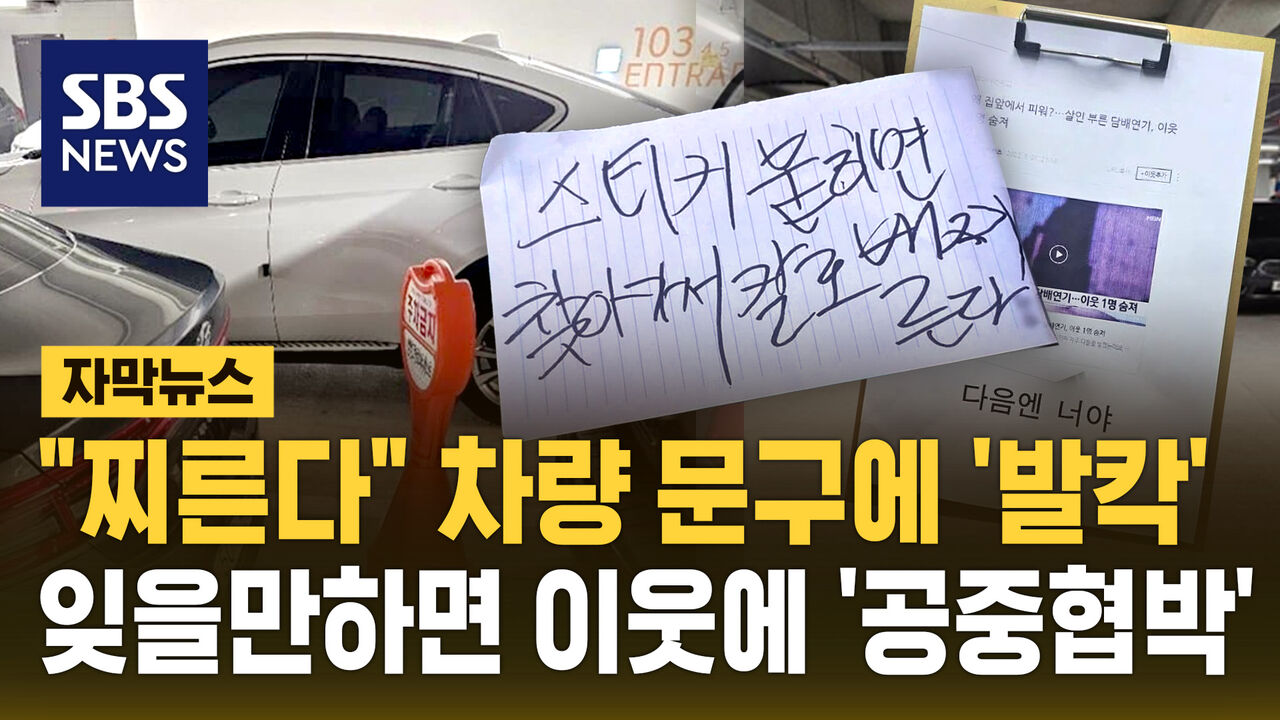 지난 7일 광주 서구 화정동의 한 아파트 단지 지상에 주차된 차 앞 유리에는 '스티커 붙이면 찾아가서 칼로 배 찌른다'고 적힌 메모가 붙어있었습니다.