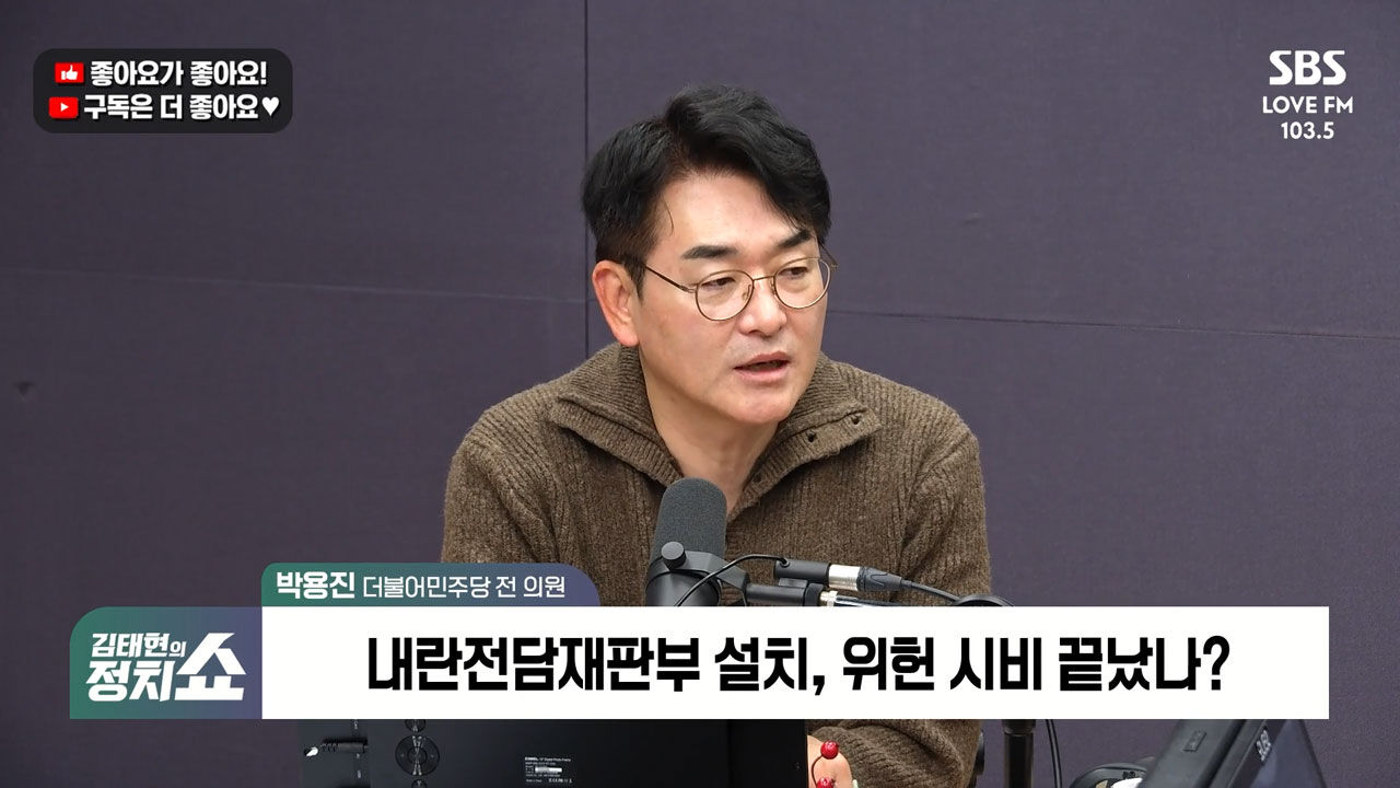 ▶박용진 : 우리가 원하던 방식대로 신속하고 엄정한 재판이 진행되기보다는 오히려 이게 지연될까 봐 걱정인데요. 그렇게 가지 않으려면 이번에 법이 통과되더라도 최종적인 내용과 관련해서 사법부하고 계속 협의를 하는 과정이 필요해요. 그래서 그 내부에서도 이미 이거는 위헌성이 없어, 이게 다 제거된 거야라고 합의점들이 이루어져야 재판부가 됐어 하고 이런 걸 그냥 기각해버리고 재판을 바로 속행하면 되거든요.
