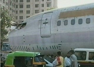 뭄바이 시내 번화가를 날개와 꼬리가 없는 보잉 737기가 점거했습니다.