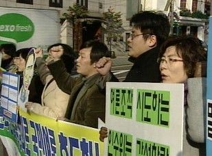 이렇게 일방적인 공청회는 여론을 호도할 수 있다며, 전교조와 참교육학부모연대는 인수위 앞에서 항의시위를 벌였습니다.
