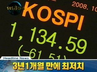 1. 세계증시 폭락 속에 코스피 지수도 하락을 거듭하다가 3년 1개월만에 최저치로 마감됐습니다. 원·달러 환율은 폭등했습니다.