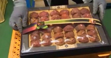 능숙한 손놀림을 몇 번 거치자 맛스러운 곶감은 예쁘게 포장이 돼 나옵니다.