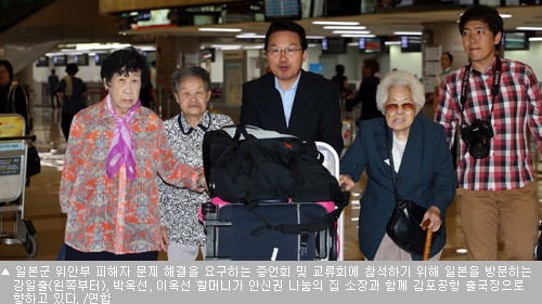 이옥선, 박옥선, 강일출 할머니 등 위안부 피해자 3명은 오늘(24일) 일본 도쿄도 지요다구 참의원 회관에서 열린 '나눔의 집 할머니를 맞이하는 원내 집회'에 참석했습니다.