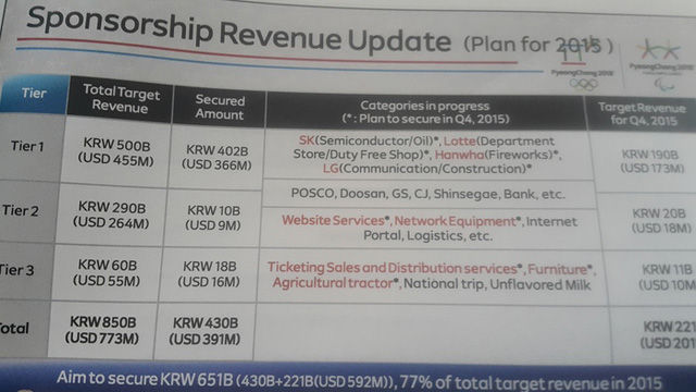 평창 조직위의 계획대로 후원 계약이 순조롭게 진행될 경우 흑자올림픽의 청신호가 켜지게 됩니다. 조직위는 그동안 올해 안에 전체 목표액의 약 70%인 6,000억 원 이상을 확보하겠다고 다짐했는데 지금 여건으로는 이 목표를 초과 달성할 가능성이 높습니다.