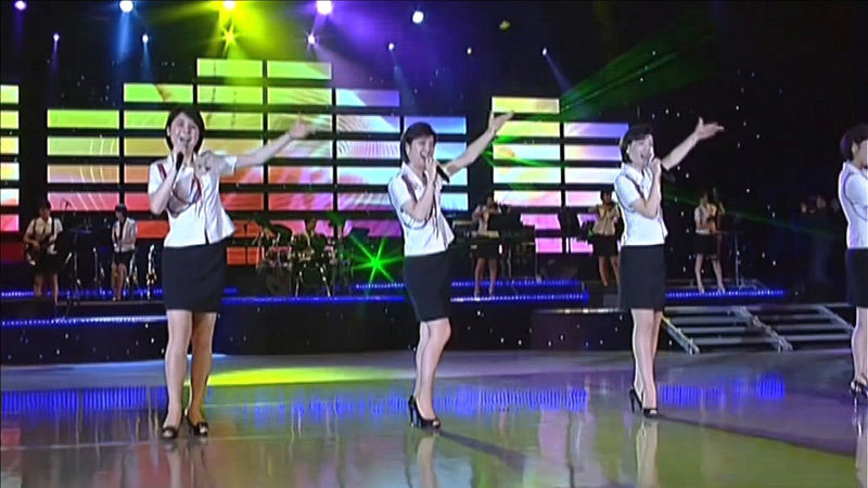 조선중앙TV가 지난 14일 녹화방송한 청봉악단과 모란봉악단의 최근 노동당 7차 대회 경축공연에는 모란봉악단이 이전까지 볼 수 없었던 다양한 군무를 추는 모습이 담겼습니다.