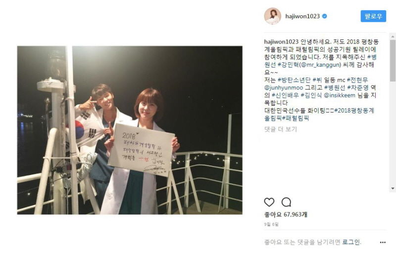 Korean celebrities have been participating in this '2018 PyeongChang Winter Olympics & Paralympics Success Relay', in order to boast morale before the big event.