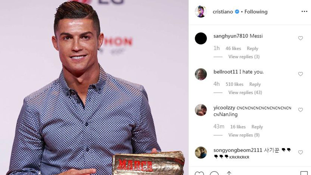 호날두는 자신의 트위터, 인스타그램, 페이스북 계정을 통해 스페인 일간지 마르카가 시상한 '마르카 레전드 어워드' 상을 받은 사진을 올렸습니다.