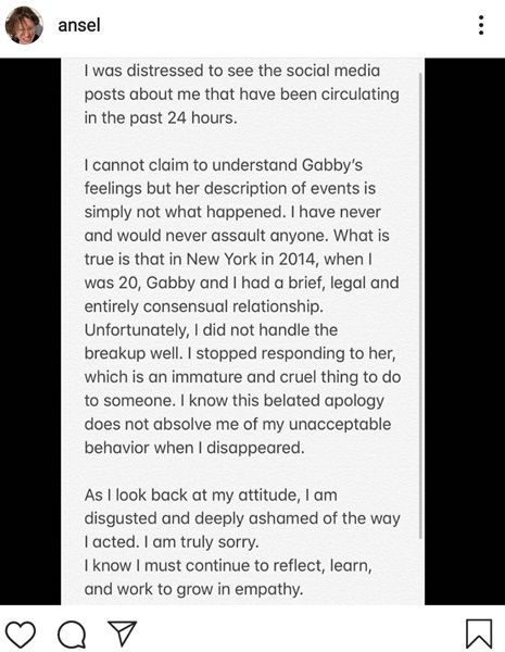 안셀 엘고트는 어제(21일) 자신의 인스타그램을 통해 최근 불거진 미성년자 성폭행 의혹에 대해 해명했습니다. 그는 "합법적으로, 합의된 상황에서 그녀와 만났고, 이별에 미숙했을 뿐"이라면서 "뒤늦은 사과에도 내 행동을 용납하기 어려울 거라는 건 알고 있다"고 심경을 밝혔습니다.