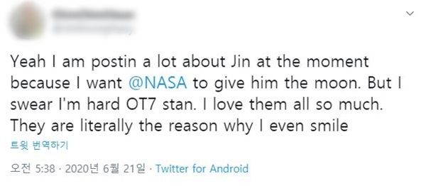 특히 나사가 진의 본명인 '석진'을 언급해 더욱 눈길을 끌었는데요, 이에 팬들은 "역시 월드클래스", "본명으로 언급하니까 더 감동적이다", "나사에도 아미(방탄소년단 팬덤)가 있나" 등 폭발적인 반응을 보이고 있습니다.