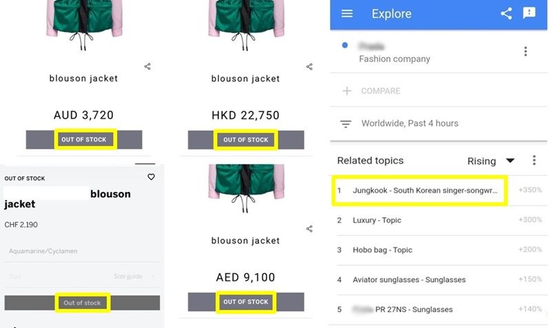 현재 한국을 시작으로 미국, 일본, 중국, 스위스 등 25개국 이상의 해당 브랜드 공식 홈페이지에서 연이은 품절 대란이 벌어졌습니다. 이에 누리꾼들은 "일반인은 소화하기 힘들 것 같은 옷이다", "정국 얼굴이 옷을 살렸다", "가격이 비싸던데 품절이라니 대단하다" 등 놀랍다는 반응을 보였습니다.