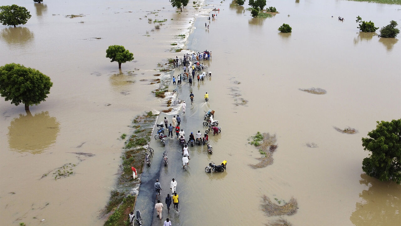 ▲ 2022년 9월 19일 나이지리아 홍수에 대피하는 사람들