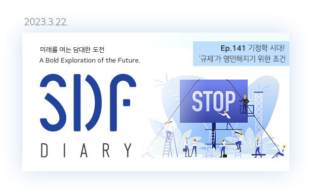 규제에 대한 우리의 관심도 필요합니다. 규제가 우리의 안전과 환경을 지켜주는 건지, 정말 효과가 있는 건지, 규제 유지에 비용만 들고 아무짝에 쓸모없는 건 아닌지, 졸속 규제는 아닌지, 쏟아지는 국회의원 입법 규제를 이대로 놔둘 건지… 계속 따지고 물어보는 노력이 필요해 보입니다. 물론 언론도 노력해야겠지요. 앞으로 우리가 어떻게 하면 더 규제에 대해 관심을 가질 수 있을지 관련 전문가의 조언을 듣고 정리해, 또 전해 드리겠습니다. 김종석 규제개혁위원장과 함께 한 SDF 다이어리는 여기까지입니다.