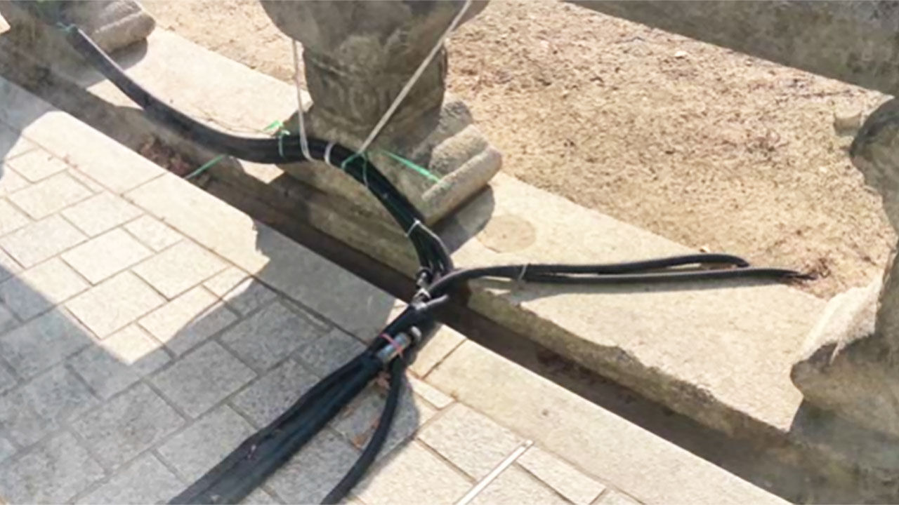 환구단 인근 CCTV와 경사도와 진동을 측정하는 계측장비 등에 연결된 전기선들입니다.