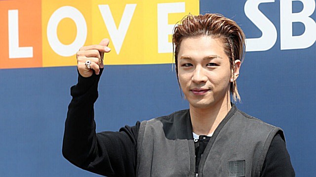 Taeyang flashed a fiery heart as he headed into SBS headquarters in Mok-dong, Seoul, for a live appearance on SBS PowerFM’s Cultwo Show on April 27, 2023.