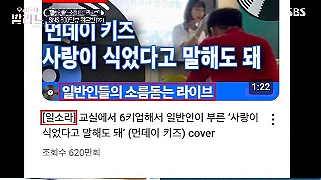 이날 방송에는 600만 뷰 동영상의 주인공이 등장했다. 영상 속 모습과는 꽤 달라진 것 같은 최은빈은 "일반인들의 소름 돋는 라이브"를 통해 화제를 모은 바 있다.