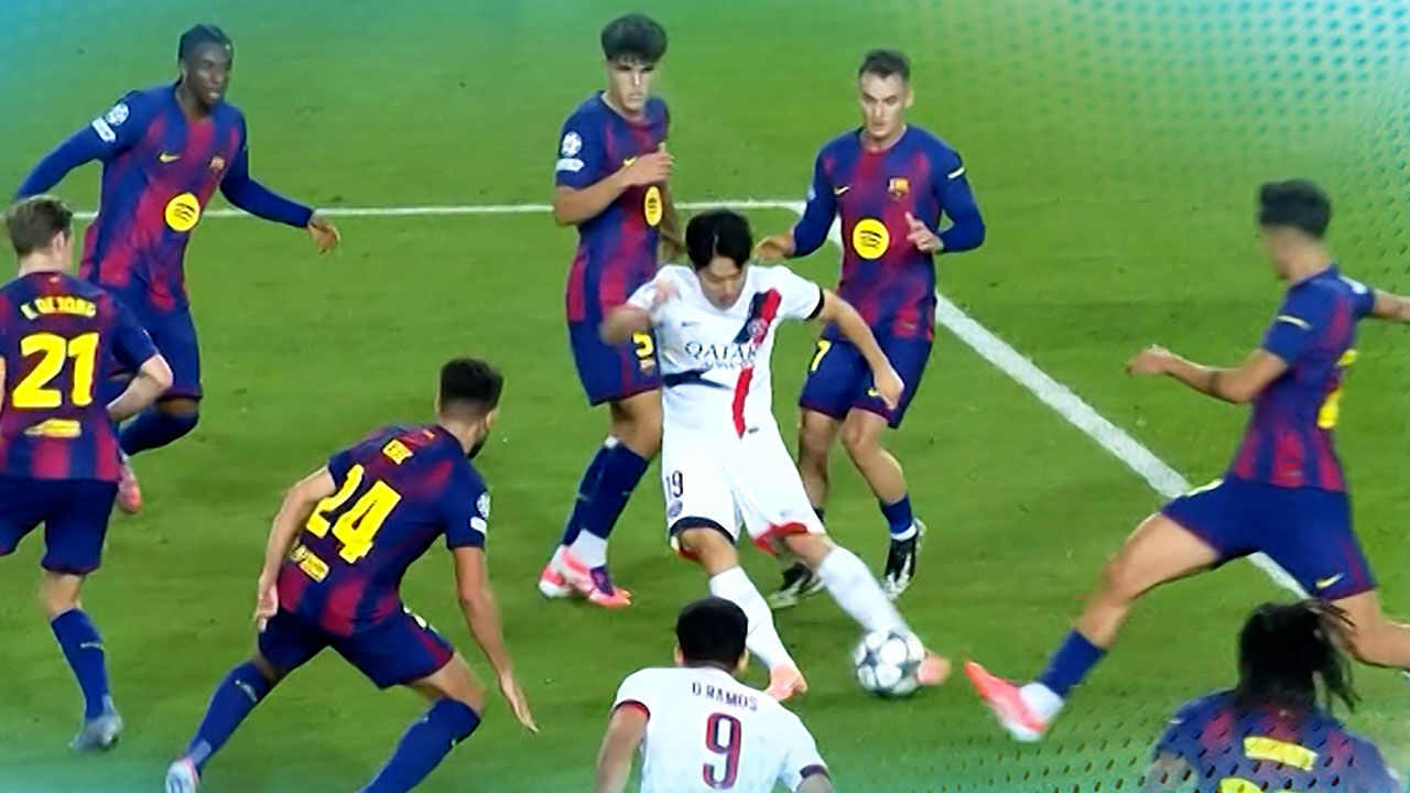 이강인이 압박을 뚫고 중원으로 공격을 전개했고, 하키미를 거쳐 하무스의 '극장골'이 터지면서, 파리는 적지 바르셀로나에서 기분 좋은 2연승을 달렸습니다.