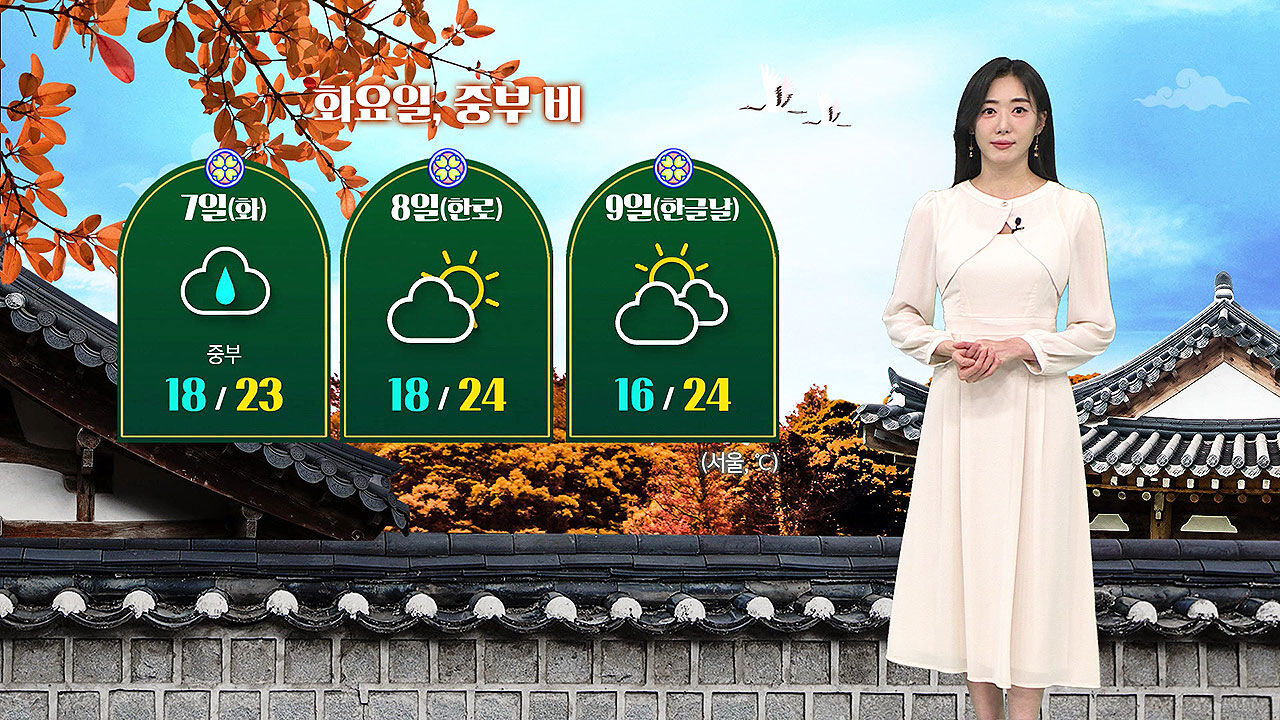 연휴 후반부인 화요일에 또 중부 지방에 비 예보가 있습니다.