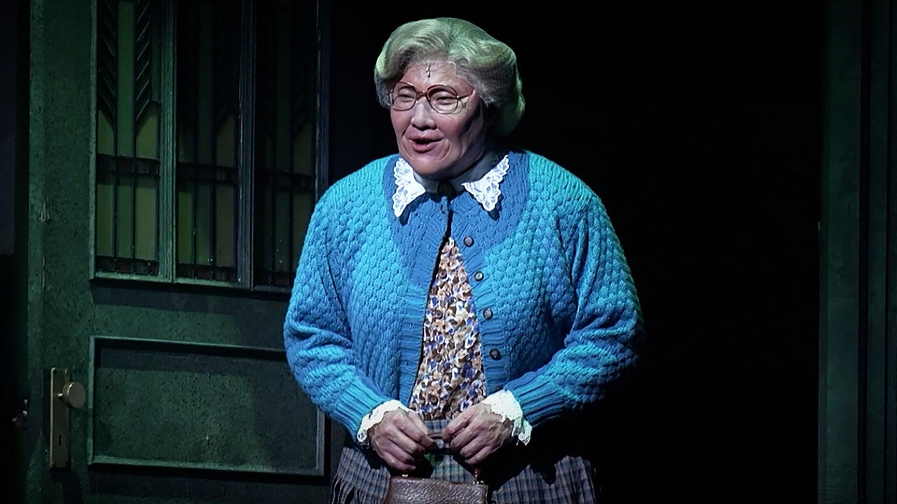 로빈 윌리엄스의 이 할머니 특수분장이 무대 위로 옮겨졌습니다.