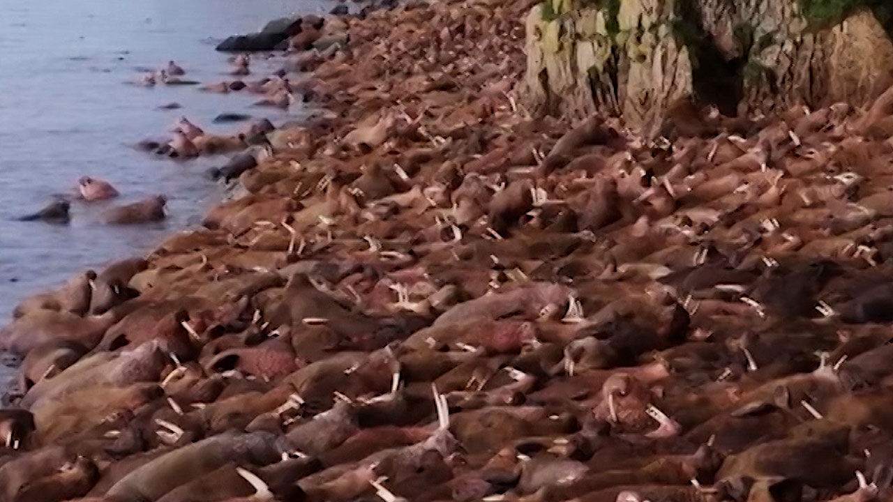 멸종위기종인 바다코끼리들이 이렇게 해안으로 몰려드는 이유는 지구 온난화 때문이라고 하네요.