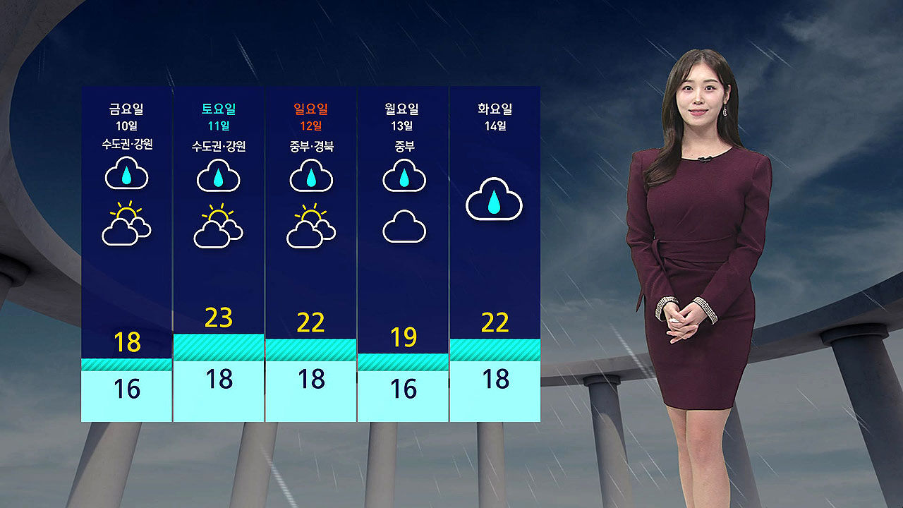 주 후반에는 중부를 중심으로 비가 오는 날이 잦겠고요.