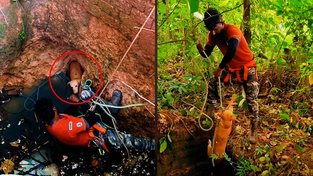 곧 주민들의 신고를 받고 동물 구조가가 출동했는데 몸에 밧줄을 묶고 직접 우물에 들어갔지만 개가 워낙 경계심이 강해 구하기 쉽지 않았다고 하네요.