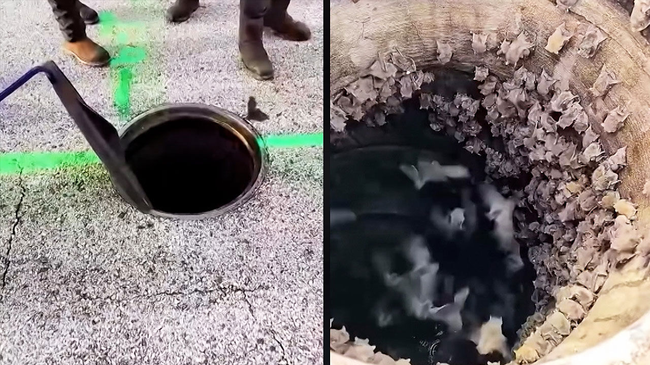 보통 이 지역 박쥐들은 도심 교각 아래서 산다는데 맨홀 안을 보금자리 삼은 모습이 희한하죠.
