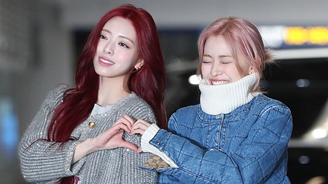 ITZY's YUNA and RYUJIN jetted out of Incheon International Airport on Dec. 13, bound for the Philippines to attend the 2023 Asia Artist Awards (AAA). The duo paused to flash sweet heart signs for photographers before heading to their gate.