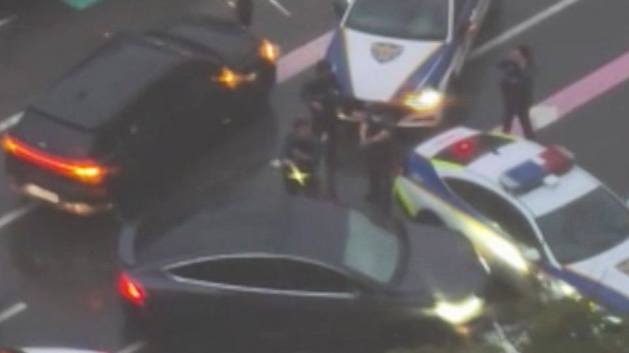 왕복 8차선 도로 한복판에서 경찰차들이 검은색 승용차를 에워싸더니, 경찰관이 테이저건을 쏘며 하차를 명령합니다.