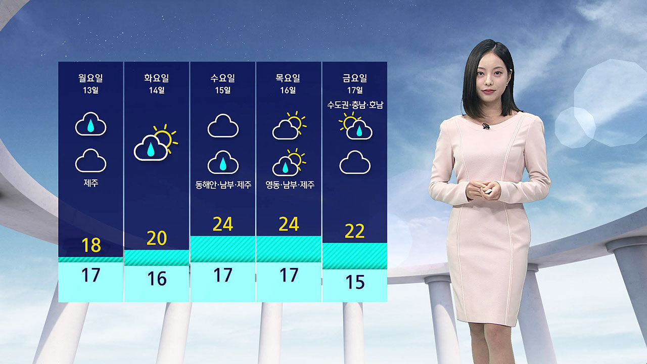 낮 기온 서울 23도, 대전·대구 24도, 광주 26도로 어제보다 2~6도가량 낮겠습니다.