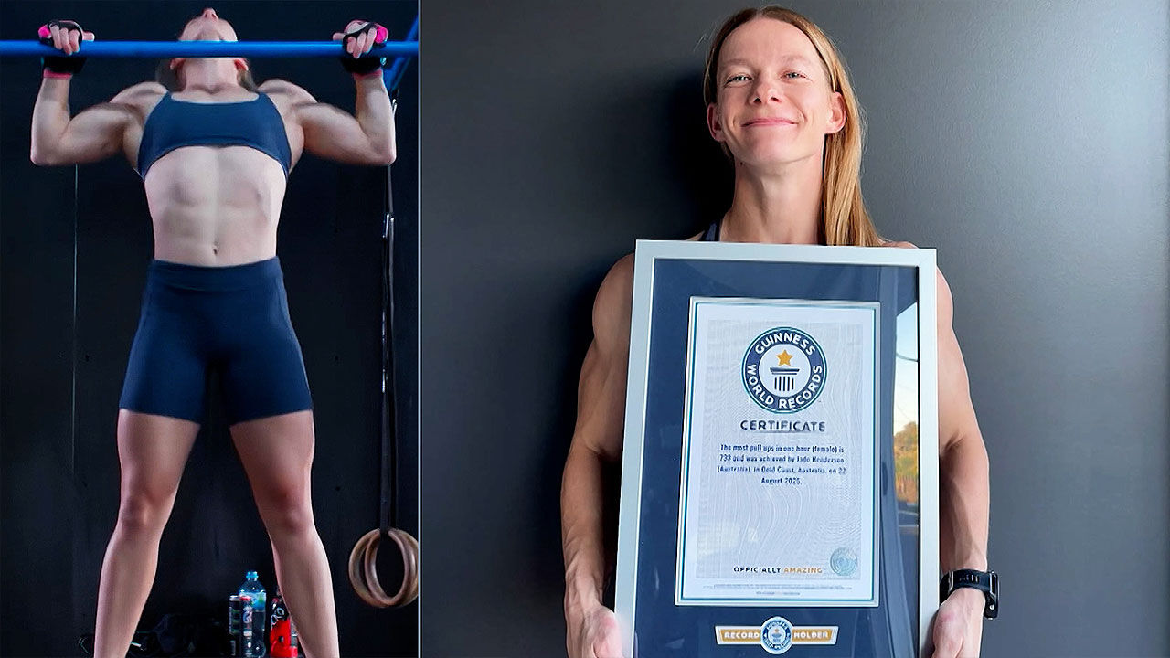 이 여인은 호주의 경찰관인데 1시간 동안 무려 733개 턱걸이를 하는 데 성공해 이 분야 세계 기록을 세웠습니다.