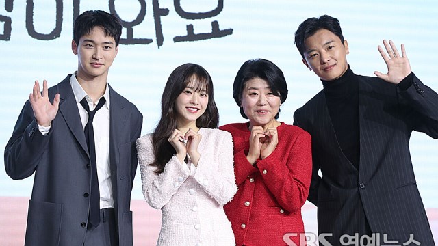 From left, Jang Dongyoon, Park Boyoung, Lee Jung-eun and Yeon Woo-jin strike a lively pose during the photo call for Netflix’s 'Daily Dose of Sunshine' at JW Marriott Dongdaemun Square in Seoul on Nov. 1, 2023.