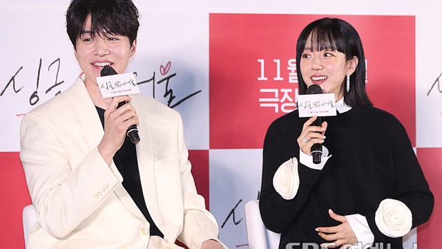 Actors Lee Dongwook (left) and Lim Soojung took the stage at Lotte Cinema Konkuk University in Seoul on Nov. 3 for the “Single in Seoul” production briefing, sharing a lighthearted onstage chat about the film.