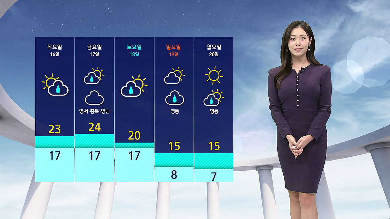 오후 중에 충청과 남부, 제주 지역에 비가 시작돼 밤이 되면 수도권과 강원 지역에도 비가 내리겠습니다.