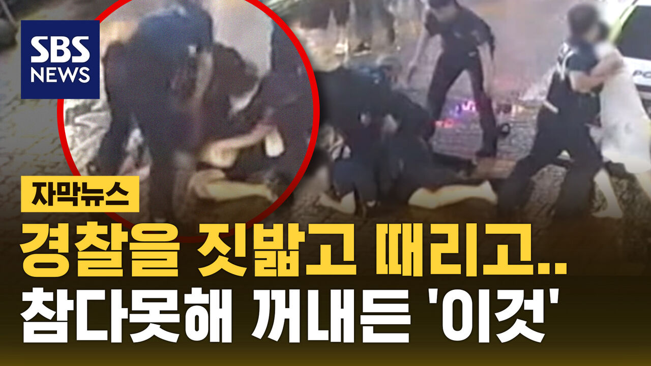 이 남성들은 경찰관을 밀치며 욕설을 하다가 급기야 건장한 체구로 경찰관을 밀어 쓰러뜨리더니 짓누르기 시작합니다.