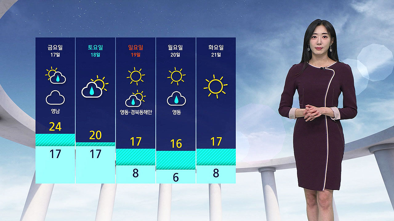 서울의 아침 기온이 17도에서 출발해서 낮 기온이 23도까지 오르겠고 광주는 27도까지 올라 다소 덥겠습니다.
