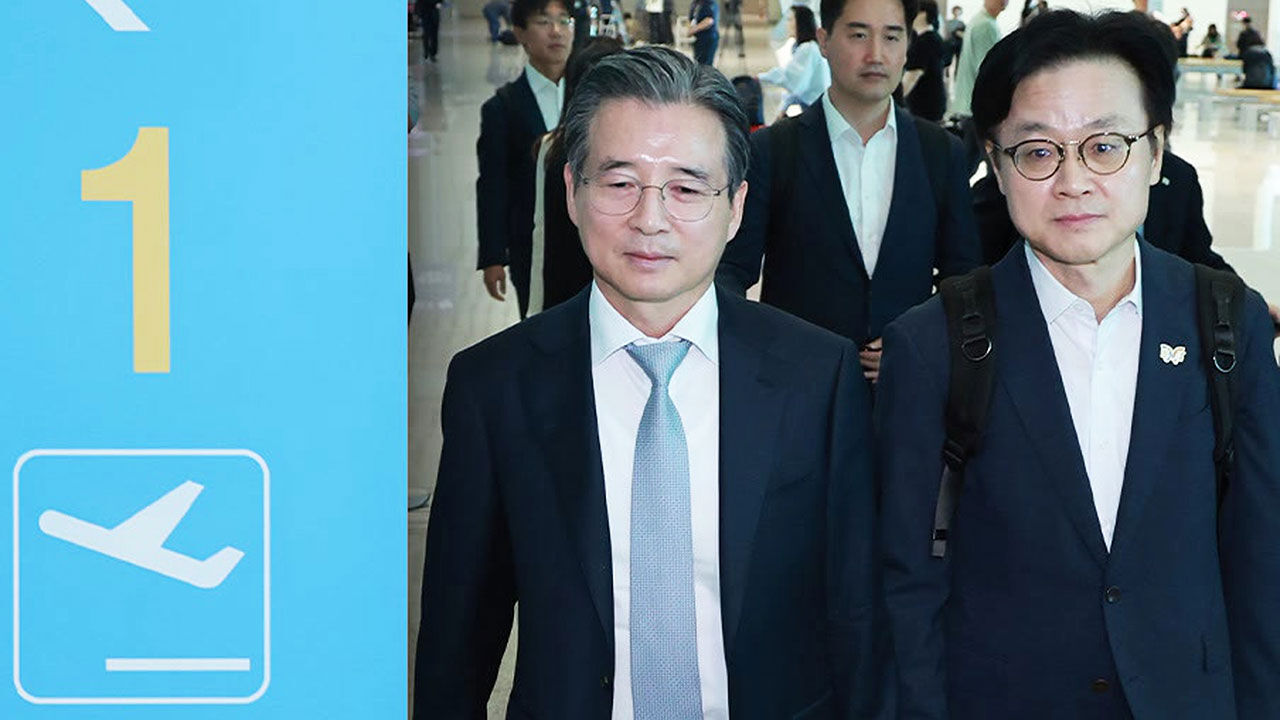 한미 관세 협상의 우리 측 4인방 가운데, 김용범 대통령실 정책실장과 김정관 산업통상부 장관이 미국행 비행기를 탔습니다.
