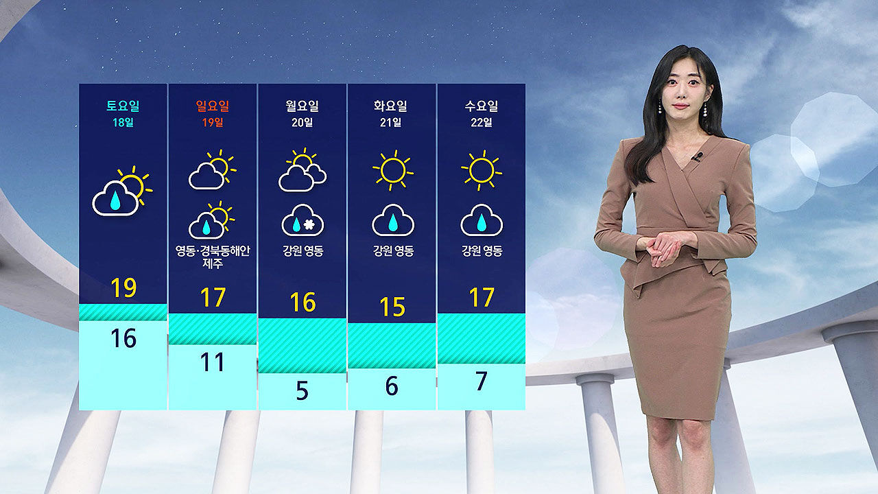 오늘(17일)은 하늘이 차차 흐려져 저녁에 서쪽 지역부터 비가 시작되겠습니다.