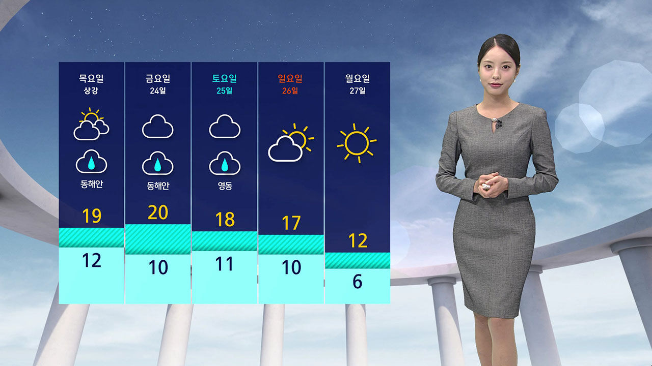 오늘 강원 영동에 20에서 60mm, 경상권 동해안에 5에서40mm 안팎, 제주에 5mm 정도의 비가 내리겠습니다.