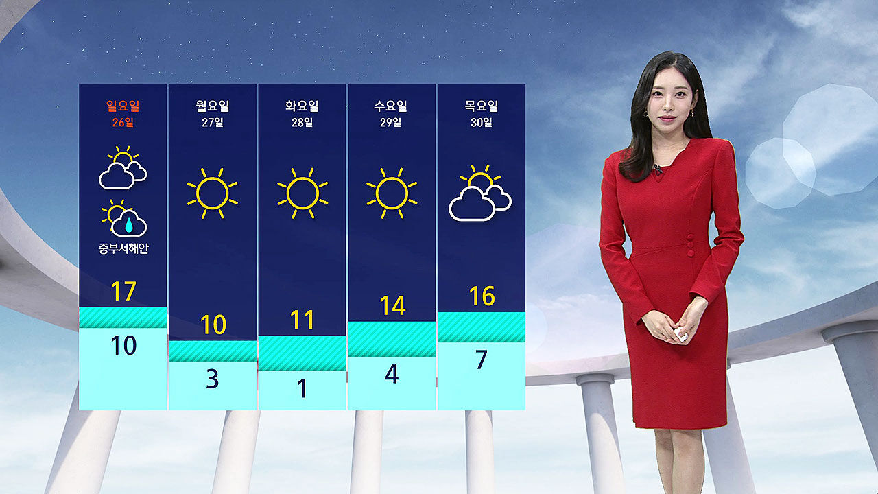 다만 휴일인 내일(26일) 오후부터는 북쪽에서 한기가 강하게 내려오겠습니다.