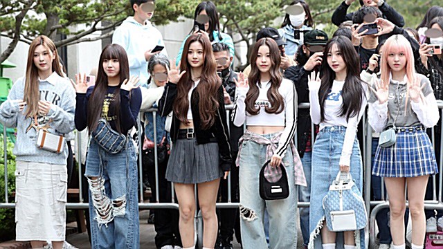 NMIXX arrived at KBS in Yeouido, Seoul, on the morning of April 14, striking playful poses as they headed into the studio for a music show rehearsal.
