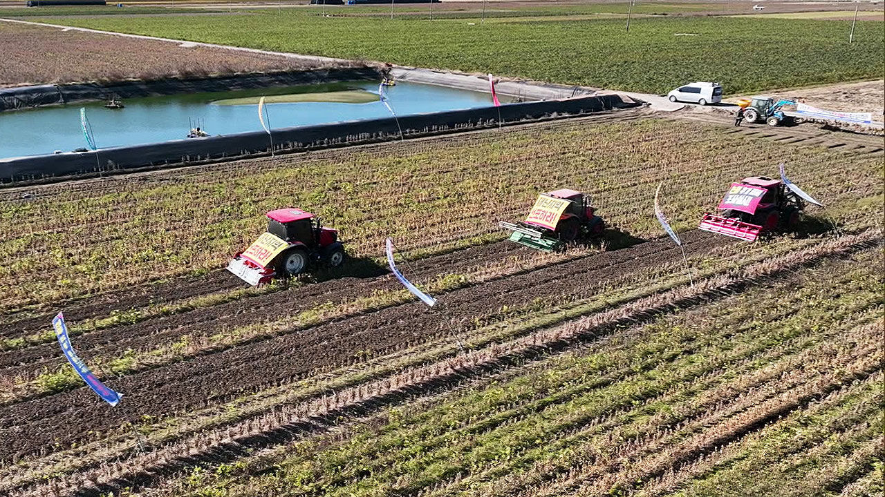 농민들이 애지중지 길러온 논콩을 갈아엎고 있습니다.