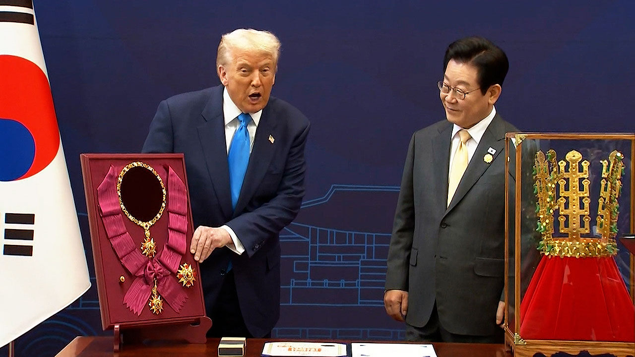 이재명 대통령은 한국을 방문한 트럼프 미국 대통령에게 우리나라 최고 훈장인 무궁화대훈장과 신라 금관 모형을 선물했습니다. 황금색을 좋아하는 트럼프 대통령의 취향을 고려한 것으로 보이는데 미국 대통령에게 무궁화 대훈장을 수여하는 것은 이번이 사상 처음입니다.