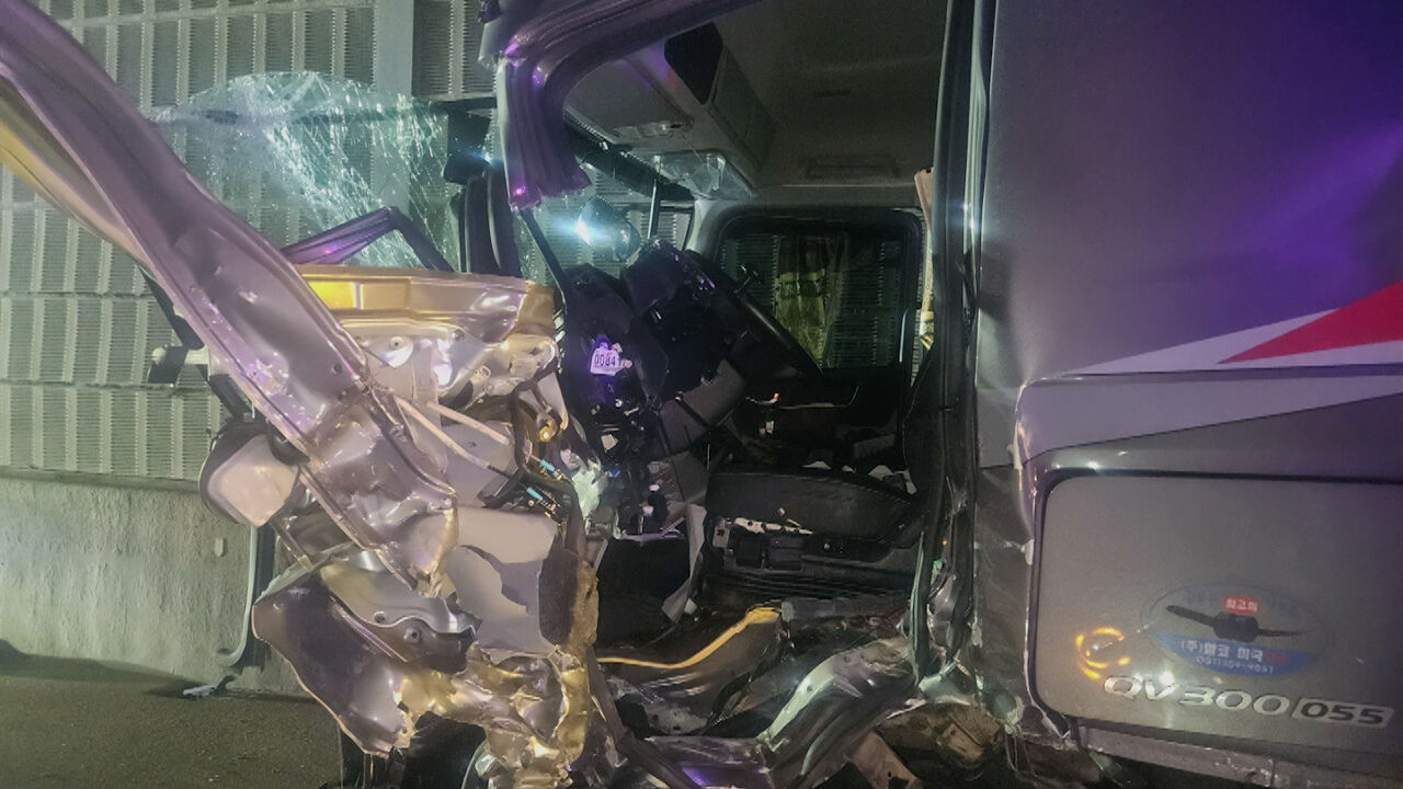 화물차가 고속도로 공사 차량 추돌…60대 운전자 부상
