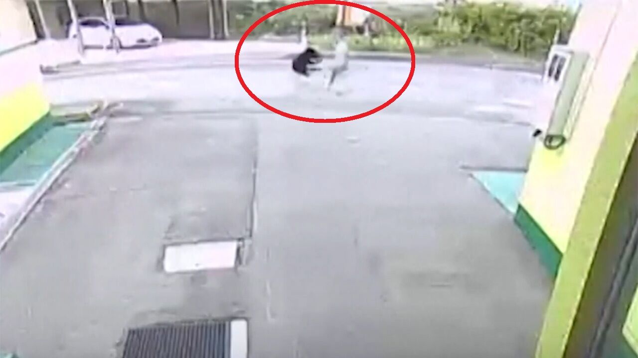 놀란 여성이 재빨리 달아나 차에 숨었지만 얼굴을 다쳤습니다.