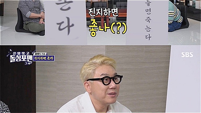 이날 돌싱들은 가훈(?)을 읊었다. 특히 "야밤토크쇼 진지하면 존다"라는 가훈을 두고 한 마디씩 거들었다.