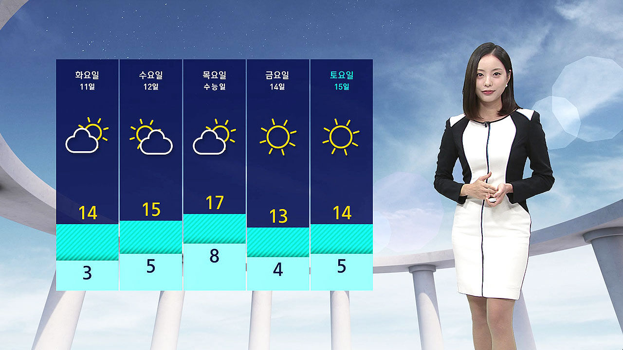 수능일인 목요일은 큰 추위 없이 일교차만 염두에 두시면 되겠습니다.