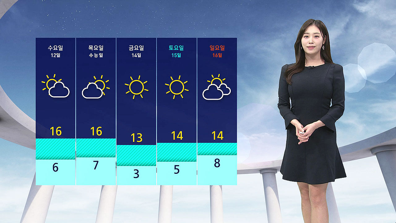 수능일인 목요일에는 서울의 낮 최고 기온 16도까지 오르는 등 수능 한파 없이 온화하겠습니다.