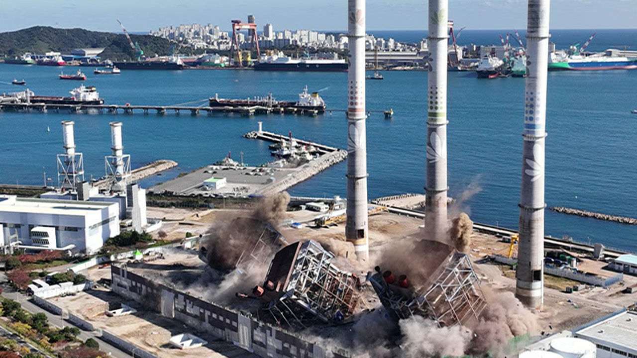 '쾅'하는 굉음과 함께 높이 63m의 4·6호기가 거의 동시에 넘어졌습니다.