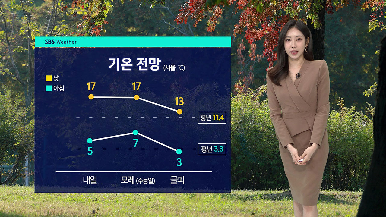 내일 아침 기온을 보시면 춘천 1도, 대전 2도로 아침 공기는 다소 쌀쌀하겠고요, 낮 기온은 부산이 21도까지 오르면서 오늘보다 조금 더 온화하겠습니다.