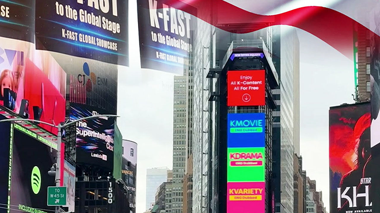 미국 뉴욕 맨해튼 한복판 타임스퀘어 전광판에 한국 드라마를 무료로 볼 수 있다는 대형 광고가 펼쳐집니다.